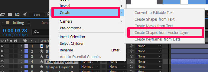 (주의 : 일러에서 에펙으로 가져온 이미지들은 반드시 레이어에서