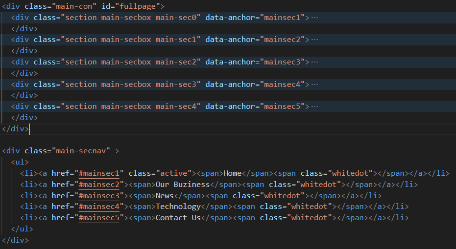 data-anchor="mainsec1" 의 값은 기존의 id 값과 같은 값이 있으면 안된다.